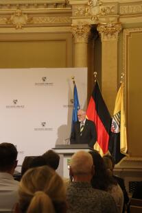 Die Veranstaltung wurde mit Ansprachen von Rainer Robra, Staats- und Europaminister des Landes Sachsen-Anhalt, und Sven Schulze, Minister für Wirtschaft, Tourismus, Landwirtschaft und Forsten, eröffnet. Beide blickten nicht nur auf zentrale politische Entwicklungen der letzten Jahrzehnte zurück, sondern beschrieben auch persönliche Erfahrungen aus der Zeit nach der Wiedervereinigung. Diese Reflexionen boten einen eindrucksvollen Rückblick auf 35 Jahre Bundesrepublik Deutschland in der Einheit und die vielfältigen Veränderungen, die damit verbunden waren.